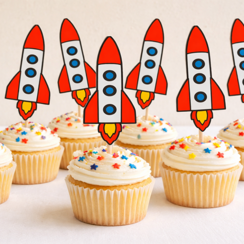 - Create your special day with this "Rocket" cupcake topper- 10 pcs of cupcake topper- Decorate your party with Rocket cupcake topper- Create your beautiful birthday, baby shower, wedding and other special day- Please let us know if you need any particular colours