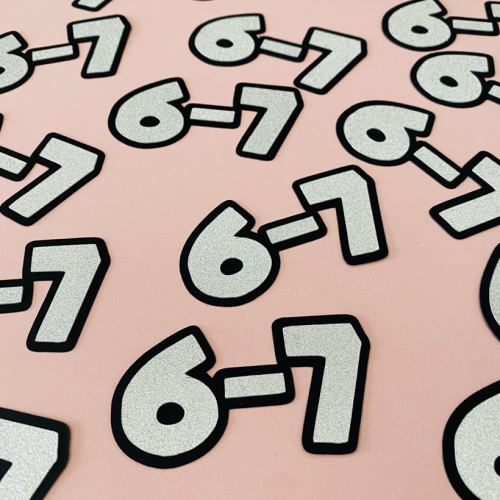 - Create your special day with this "6-7" confetti- 12 pcs of 6-7 confetti- Size approximately 8.0cm x 4.0cm- Decorate your party with 6-7 confetti - Create your beautiful birthday, baby shower, wedding and other special day- Please let us know if you need any particular colours